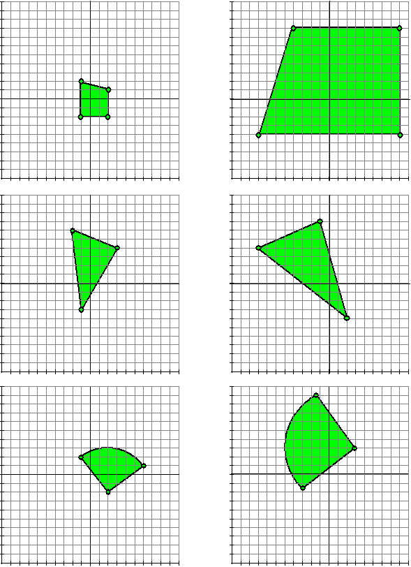 | Immers bij al die "bewerkingen" in de punten I en II hierboven blijven rechte lijnen nog steeds rechte lijnen en cirkels blijven cirkels. Het handige daaraan is dat je bijvoorbeeld, om het beeld van een driehoek te vinden, alleen maar hoeft te kijken waar de hoekpunten terecht komen; dan heb je de hoekpunten van de beelddriehoek. De rechte lijnen daartussen blijven rechte lijnen. En om het beeld van een deel van een cirkel te vinden hoef je alleen maar te kijken waar het middelpunt en waar de uiteinden terechtkomen. | ||||||||||||||||||||||||||||||||||