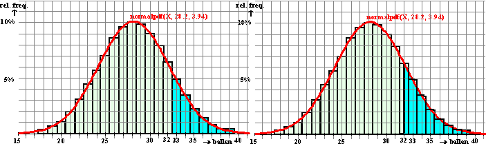 Dat geeft oppervlakte normalcdf(32.5, 1000, 28.2, 3.94) = 13,8% en