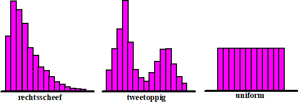| 2. | Waarom heeft een tweetoppige verdeling in het algemeen een grotere standaarddeviatie dan een ééntoppige? |