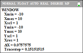 Mijn TI-84 geeft bij deze formules dan de vensters en grafieken