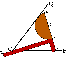 Leg punt A op een been van de hoek, en zorg dat de lange kant (BT)