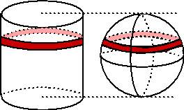 oppervlakte van een bol gelijk is aan die van de cilindermantel van de