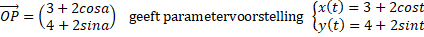 2t) en straal 1. Dus P draait rond een cirkel waarvan het middelpunt