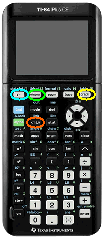 door de "vreemde" knop hiernaast (oranje omcirkeld in de TI-84
