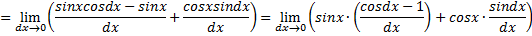 | Via de definitie van de afgeleide (met f(x) = sinx) : | |||||