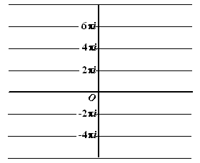 precies gelijk is. Leuke plaatjes kun je trouwens krijgen door een techniek te gebruiken die "domain-coloring" heet. Daarbij geef je alle punten in het complexe vlak een kleur, en punten met dezelfde kleur hebben dezelfde functiewaarde. Als je er meer over wilt weten moet je maar eens kijken op: http://www.mai.liu.se/~halun/complex/domain_coloring-unicode.html Als a gelijk is aan nul, dan ligt z dus op de imaginaire as (z = bi), en dan is ez = cosb + i • sinb. Dat betekent dat ez op de eenheidscirkel ligt. En zo gaan alle verticale lijnen x = a over in cirkels met straal ea Als b nul is, dan ligt z dus op de reële as (z = a), en dan is ez = ea (immers sin0 = 0 en cos0 = 1). Dat betekent dat ez op de positieve reële as ligt. En zo gaan alle horizontale lijnen over in punten die dezelfde hoek hebben, dus in schuine rechte lijnen Samengevat voor één zo'n strook: |