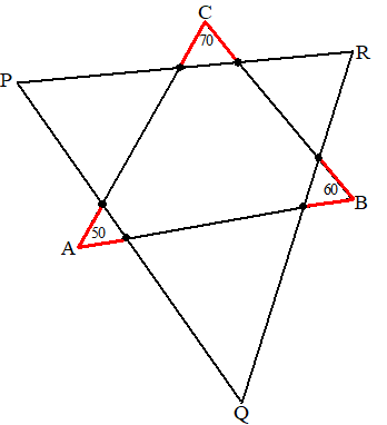 Door die zes punten wordt een nieuwe driehoek PQR vastgelegd.