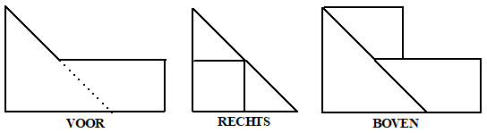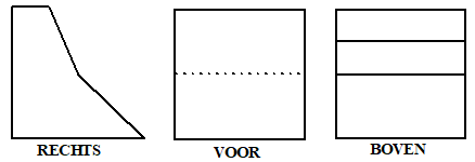 Hieronder zie je links een ruimtelijke figuur met rechts de drie