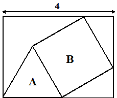 Het vierkant wordt tegen de driehoek gelegd zoals in de figuur