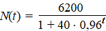 De volgende tabel voldoet aan logistische groei met een grenswaarde van