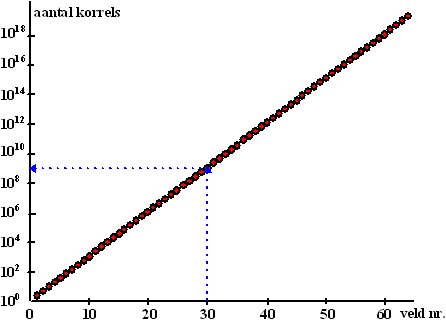 een volgend veld het dubbele aantal van het vorige veld. De koning moest