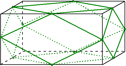 vierkant met zijden van 6 en met hoogte 12 de middens van sommige ribben met