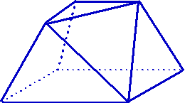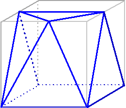 Hiernaast zie je een blauw ruimtelijk figuur in een kubus geplaatst.