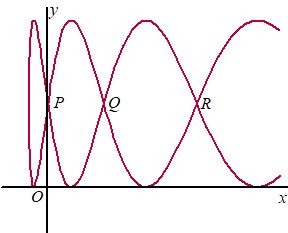 beneden zakt", en dat de middelste twee snijpunten met de x-as