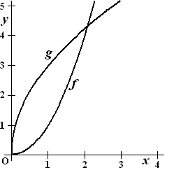 De grafieken van f en g snijden elkaar in het punt (1, 1).Voor a >1 bekijken we bij x = a het verticale
