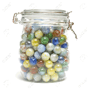 staan, helemaal gevuld met even grote knikkers. Tegen betaling van