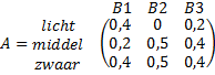 onderstaande overgangsmatrix M maken. De getallen in M zijn afgerond