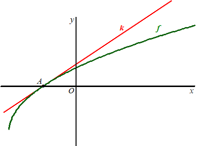 De raaklijn aan de grafiek van h in het punt A snijdt de lijn y