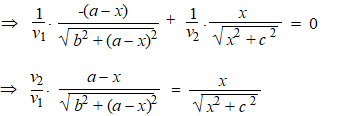 De totale tijd minimaal betekent dus dat de afgeleide ervan nul moet