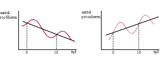 konijnen) dan stijgt de rode grafiek (de vossen hebben veel voedsel dus
