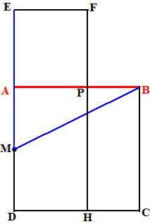 op AB. Teken het midden M van AD Teken MB Verleng MA tot ME zodat ME = MB Teken het vierkant EFPA op AE Verleng FP tot het snijpunt H met DC. AD is doormidden gedeeld in M, en AE is eraan toegevoegd. Dan is DE • EA + AM2 = EM2 (II-6) Maar ME = MB dus DE • EA + AM2 = MB2 MB2 = AM2 + AB2 (Pythagoras) (I-47) Dus DE • EA + AM2 = AM2 + AB2 Trek van beiden AM2 af DE • EA = AB2 Trek nu van beiden rechthoek DHPA af. Dan blijft over: vierkant AP = rechthoek PB• BC BC = AB dus AP2 = PB • AB |