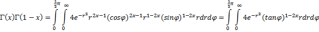 | Laten we die integralen voor Γ invullen en er een dubbelintegraal van maken: | |||||