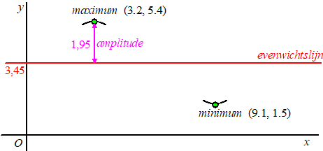 De amplitude is de afstand van de top tot de evenwichtslijn.