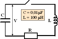 circuit met daarin een weerstand R, een condensator C, en een spoel