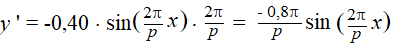 een sinusoοde met amplitude -0,80π/p