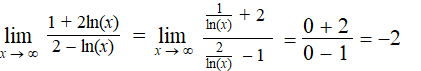 | dus x = 0,5ln6 is verticale asymptoot | ||||