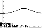 | d. | Zie de grafiek hiernaast. Window Xmin = -2, Xmax = 30, Ymin = 0, Ymax = 20 maximum: (16.667, 14) |