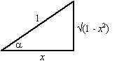 α) zie de figuur hiernaast. tan(arccosx) = tan(α) = √(1 - x²)/x |