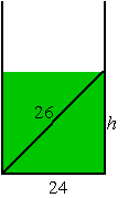 + 242 = 262 geeft h = 10. Grondvlak π • 122 = 144π. Hoogte 10. Inhoud van de soep dus 144π • 10 = 1440π = 4524 cm3. Dat is minstens 4,524 liter soep. |