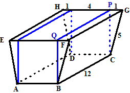 | 3. | Zie de figuur hiernaast. ARD.CDF is een prisma. Het grondvlak heeft oppervlakte 1/2 10 3 = 15 De hoogte is 8, dus de inhoud is 8 15 = 120 PQF.C is een piramide. |