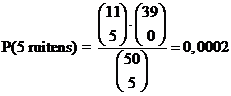 11 ruitens (R) en 39 andere kaarten (A) Ik heb een flush als er 3, 4 of 5 ruitens gekozen worden. |