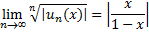 | Voor elke x gaat dat naar nul als n naar oneindig gaat, dus de reeks convergeert voor elke x | |||||
