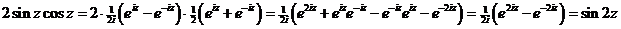 | d. | cos(2i - 1/2π) = 1/2(e-2 - 0,5πi + e2 + 0,5πi) = 1/2(e-2 • e-0,5πi ) + e2 • e0,5πi = 1/2(e-2 • -i + e2 • i) = 3,63i |