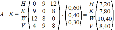 | Zie de figuur. Als je twee pijltjes na elkaar volgt moet dat samen precies gelijk zijn aan het derde pijltje dat van begin naar eind van die route loopt. Zo kun je één voor één alle waarden invullen. | |||||