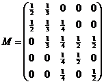 | Begin met 1 muis in A en geen enkele ergens anders, en vermenigvuldig deze beginvector met V5 : | |||||