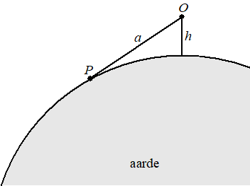 De afstand OP tot aan de horizon noemen we de horizonafstand. De horizonafstand a in meters hangt af van de kijkhoogte h in meters boven de grond. Zie de figuur hiernaast. Hoe groter de kijkhoogte, hoe groter de