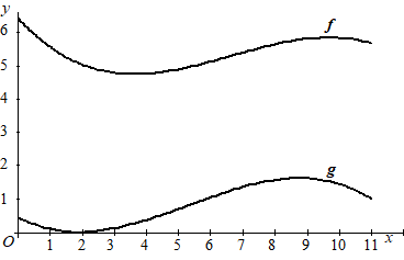 | In de figuur hieronder zijn de grafieken van f en g getekend. | |||