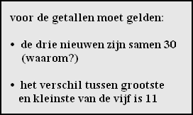 zoeken vijf getallen waarvan de spreiding groter is dan 20, maar waarvan