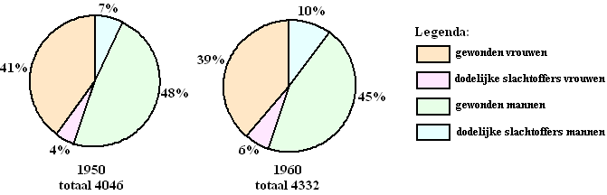 verkeersslachtoffers in de jaren 1950 en 1960. De gegevens zijn verdeeld over vier categorieën |