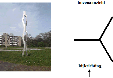 | In Utrecht staat het kunstwerk Beweging van de kunstenaar Lolke van der Bij. Het is opgebouwd uit drie even grote golvende stalen balken die onder gelijke hoeken tegen elkaar staan. Zie de foto. | |||||||||||||||||
