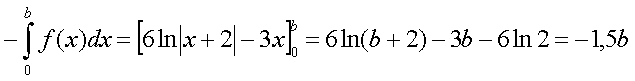 tussen de x-as en de grafiek van f moet 1,5b zijn. Een primitieve van f(x) is de functie F(x) = 6 • ln|x + 2| - 3x, dus: