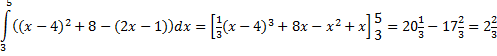 | samen geeft dat oppervlakte 22/3 + 22/3 = 51/3 | ||
