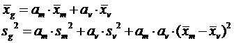 | Vaak maakt men voor een gemengde groep toch gebruik van één normale verdeling. Dit is dan een vrij ruwe benadering. Het gemiddelde en de standaardafwijking van deze normale verdeling berekent men met behulp van de volgende formules: | |||||||||||||