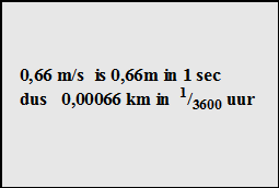 | 5. | 0,66 meter per seconde geeft in een verhoudingstabel: | ||||||||||||||||||||||||