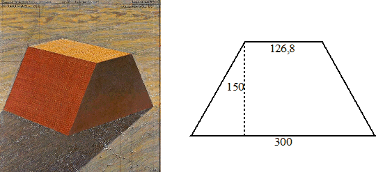 olievaten opgebouwd zouden worden. Ondanks dat The Mastaba niet gerealiseerd is, heeft Christo wel al verschillende – weliswaar kleinere – indrukwekkende varianten van The Mastaba gebouwd. Zo heeft hij in 2018 in Hyde Park in Londen een mastaba van 20 meter hoog met een grondvlak van 40 meter breed en 30 meter lang gerealiseerd. Ook van deze mastaba waren alle zes de zijvlakken uit olievaten opgebouwd. Hiervoor waren 7506 olievaten nodig. Zie de foto en de figuur hieronder. |