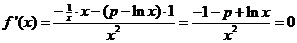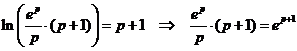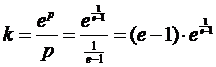 1/p = ep e ep (1 + 1/p - e) = 0 1 + 1/p - e = 0 1/p = e- 1 p = 1/(e - 1) |